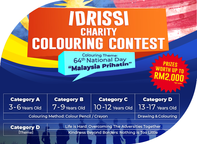 The Charity Colouring Competition is open to all Malaysians of age 3-17 years old, based on four different categories, which is A, B, C and D. Categories A, B and C will need to colour the drawing given, while Category D will be required to draw and colour based on the chosen theme, “Life is Hard: Overcoming the Adversities Together” or “Kindness Beyond Borders: Nothing is Too Little.”