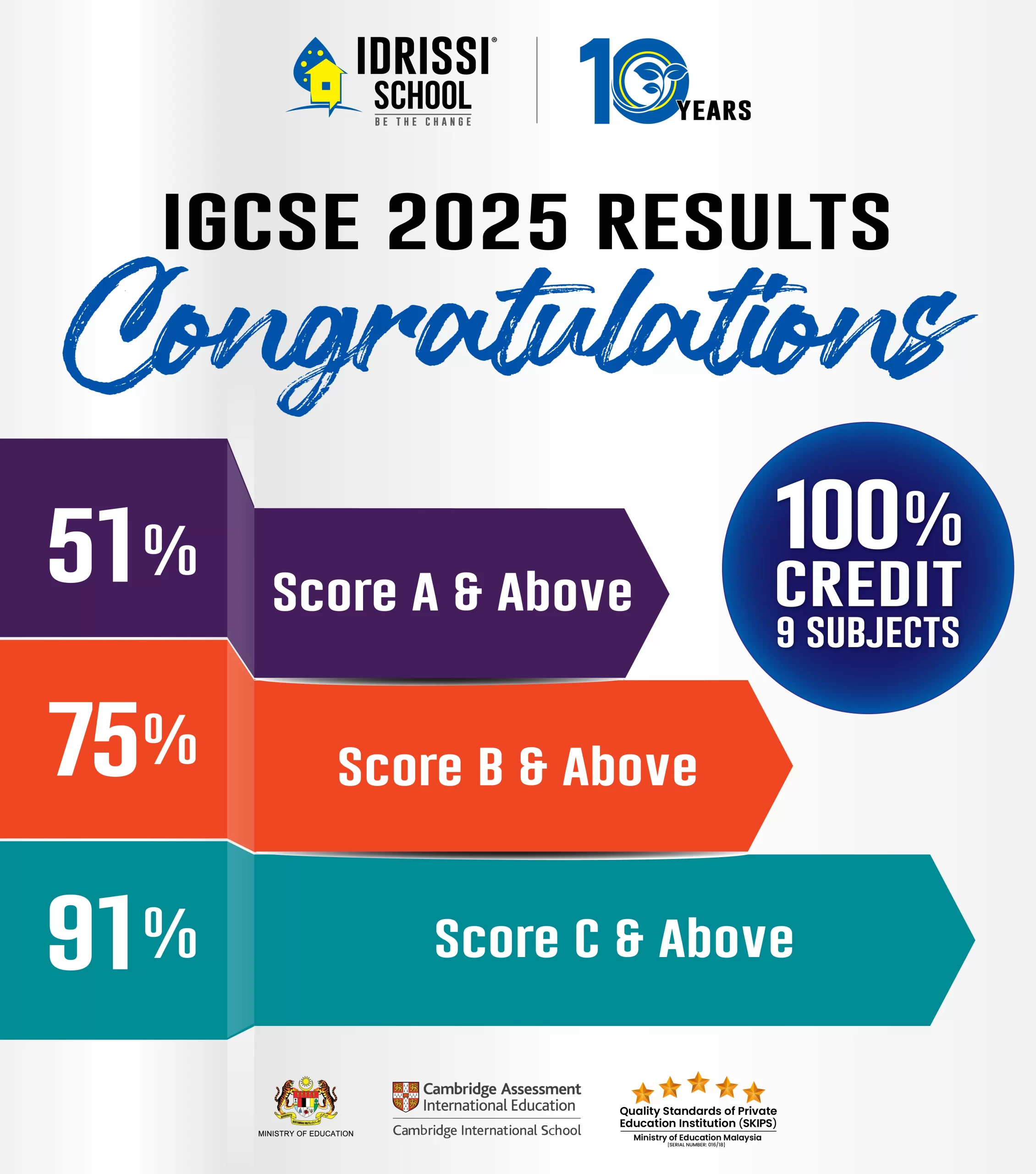 We would also like to congratulate our IGCSE candidates for this year, who achieved 100% credit across 9 subjects, with 51% scoring A & above, 75% scoring B & above and 91% scoring C & above.